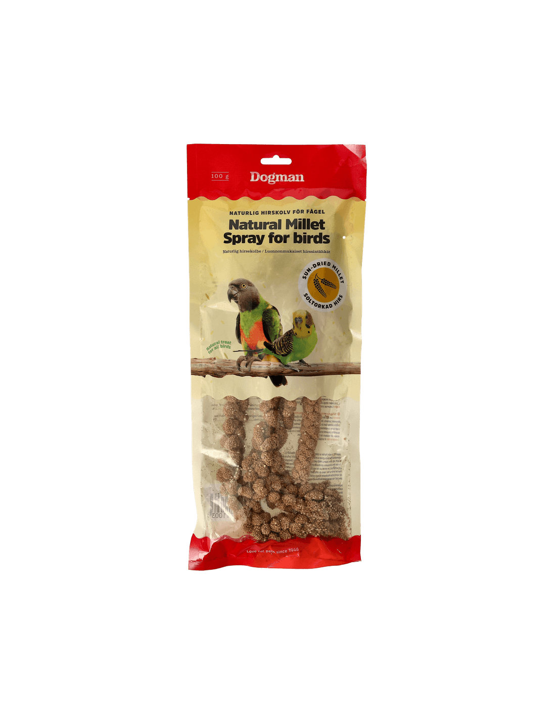 Hirskolvar är ett populärt fågelgodis som uppskattas av de flesta mindre fåglar. Lika uppskattat ute av de vilda småfåglarna som inne av burfåglar. De smakar oemoståndligt gott och ger fågeln sysselsättning när den får picka loss fröna. Häng upp hirskolven och låt din fågel få kämpa för att komma åt det goda!