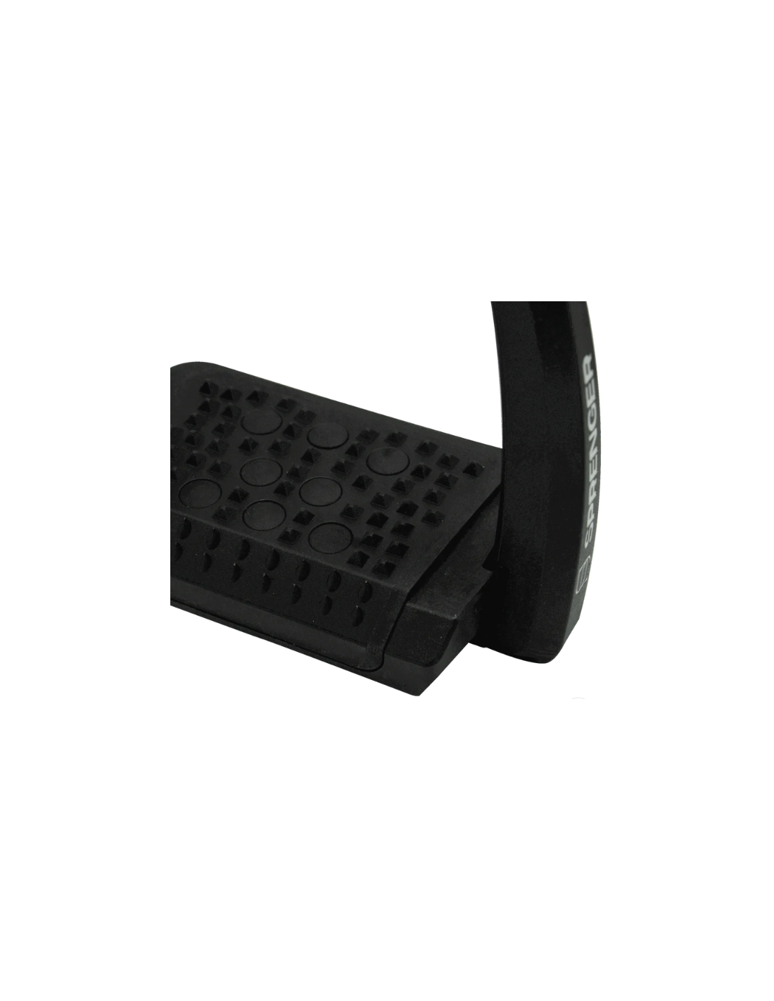Denna modell erbjuder dig också bästa möjliga stöd. Tack vare det extra breda, glasfiberförstärkta slitytan har din fot idealiskt stöd. Beroende på dina preferenser och situationen har du möjlighet att lägga till rostfria stålpigg till de mjuka och fasta greppelementen. Slitbanan lutar 5° för att stödja lårens stabilitet och säkerställa en bekväm ridupplevelse. Eftersom stigbygeln följer benets naturliga kurva kan den förbättra dess position. Den utbytbara stigbygelplattan i plast har en stötdämpande effekt och skyddar dina leder och ligament.
